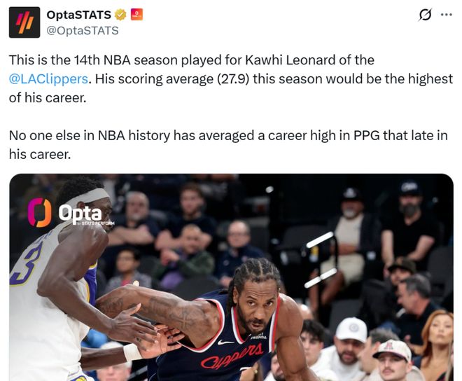這讓小卡在生涯第14個賽季,場均仍能砍下27.9分創(chuàng)造生涯新高,成為NBA歷史上首位在生涯第14個年頭創(chuàng)造場均得分生涯新高的球員。